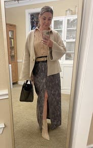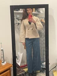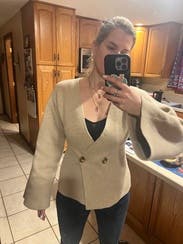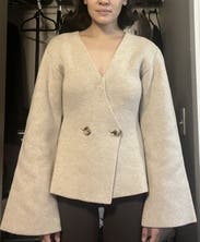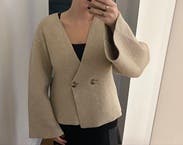 Sweater is so chic and structured - obsessed with the elevated look that it provides over a basic cardigan. I wish I had sized up one size so the buttons pulled a little less when I moved around.