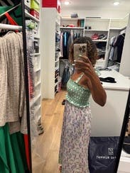 Pretty colors but felt like a house dress mainly bc of material. It has pockets! Won’t rent again, but perfect for lunch on a 80degree day!!