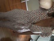 I put this buttery feeling this fully lined soft jumper. Felt wonderful. The length, pockets and tie front were perfect. I gave 4 stars only because the cleavage was lower than I like. The pattern is not my typical choice. But this romper is so adorable and we’ll made I bought it!