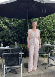 Super comfortable and super flattering. Really enjoyed this jumpsuit for a baby shower.