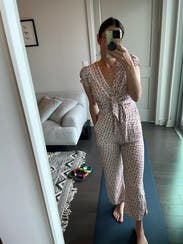 i loved this jumpsuit! really considered buying it and will definitely rent again. perfect length for my 5’2” frame and was so comfortable. i wore to a small beach concert, to work (with a camisole), and to some dinners. flattering, fun, and a great rental!