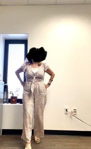 Loved everything about this jumpsuit! The fabric and the fit are super comfortable and the style and pattern is so cute, plus it has pockets. Seriously considering buying this one