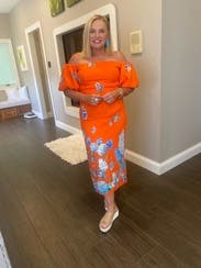 This dress is totally my style, for starters. I love a puffy sleeve and strapless look, so this is money for me. I wore this to my mom’s retirement party - she asked her children to wear bright colors - and totally stood out from the crowd. I got so many compliments and felt so comfortable in it. Highly recommend!