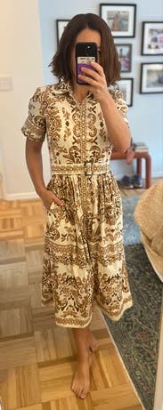 For me this dress was a winner. It was true to size on me (size 6, but I am small up top). Great for warm weather. Perfect length for a work event. The pattern may be busy for some, but I received so many compliments! And yay, pockets!