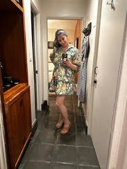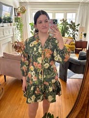 Love, love, loved this dress! The puffy sleeves didn’t feel like too much and hit at 3/4 length. The skirt hit mid-thigh which was good for both church and a mahjong girls night.