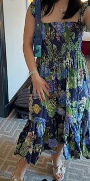 Beautiful print— the straps are a little funky though. I would recommend a cardigan or something, they just lay weird.