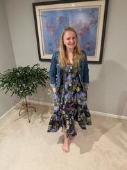 Wore to my friend's baby shower and it was perfect! So comfortable and perfect length for petite girls! Probably would go down a size if I rented again though!