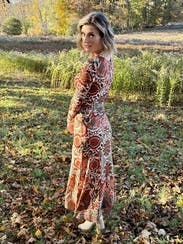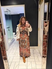 This dress made me feel incredible and was extremely comfortable. I paired it with cowgirl boots for a Kentucky-inspired look. It's versatile enough to dress up or down. The material is great, too - it doesn't wrinkle easily, making it perfect for travel. A must-rent!