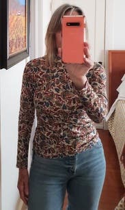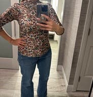 Loved this top and wore it several times. The pattern was perfect for fall events - casual w/ jeans or easily dressed up for work or a date night. The fit was great - seemed to hug in the right places and also be quite flattering.