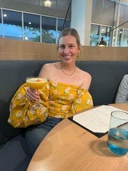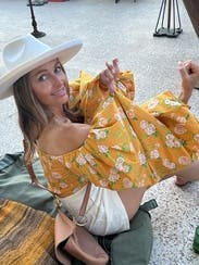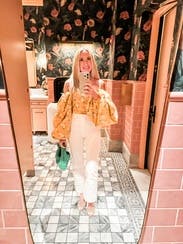 It was tight and very form fitted but I loved the drama of the sleeve and the boldness of the print. I styled with high waisted jeans and sandals and had a blast with my friends over cocktails. I style lots of RTR pieces on my IG: @jordanegray and LTK @jordanegray if you’re interested 🤍