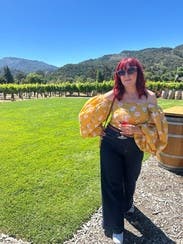 It’s definitely a big statement spring top, if you like to look unconventional! I wore it to work with the sleeves up on my shoulders, it was a little tough to keep them up so I had to lift them a few times. I work at an architectural firm and designers appreciate funky pieces so I heard a ton of compliments! I had an outdoor lunch then a wine tasting event after work and wore it off the shoulders! It was the perfect and the most refreshing top for outdoors!