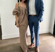 Wore to a neutral dress code wedding and got tons of compliments. I did have to wear super high heels otherwise it would have been too long. I also didn’t love how easily it wrinkled after lots of ironing, but I don’t think it was that bad. Also the part of the sleeve next to my armpits kinda chafed after a while. This was a super fun rental of something I wouldn’t normally wear.