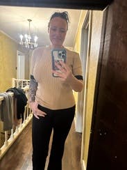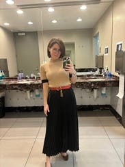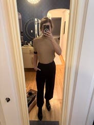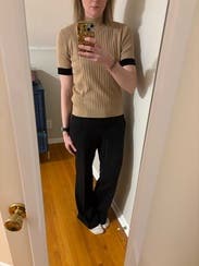 Got lots of compliments on this top. The neutral color was perfect for a work event.