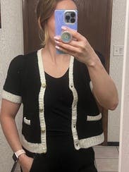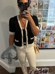 What a great piece ! Easy to dress up for a fun night out or for work. Looks luxe! A tiny bit scratchy but solved with a tank underneath. Cropped just enough and the right amount of boxiness to be flattering. 10/10
