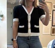 This is a standard cropped cardigan. Nothing wildly innovative or interesting. Did the job and was cute.
