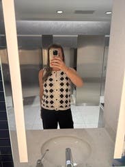 Vests are super trendy which is why I didn’t buy this one but loved it. Can layer a black shirt under or wear it without one under it.