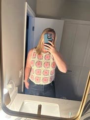 a crochet dream!! i loved this floral piece and got so many compliments. wore a black tank under since i wore this to work. great length. would rent again
