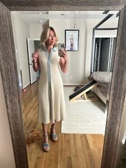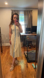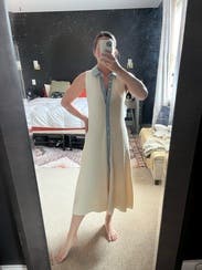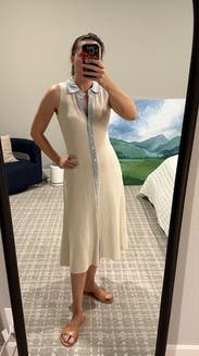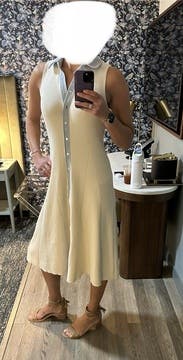 Easy elevated everyday dress. The fabric was pretty thick so don’t recommend for very hot days. It was a flattering fit and good length for me.