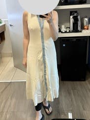 This is perfection! It’s very soft and I love the light blue denim details. The small is perfect for me- it fits close to the body but it is not fitted. You can wear this running errands, or pair it with wedges for a night out. It’s a tiny bit sheer so wear nude underwear. I’ll probably end up buying!!