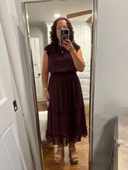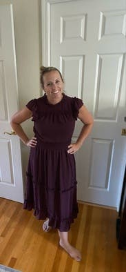 The dress was a pretty eggplant. Easy and comfortable to wear. I think it’d be better for a fall event. I wore it when it was 90 degrees and didn’t feel like it was the right choice.