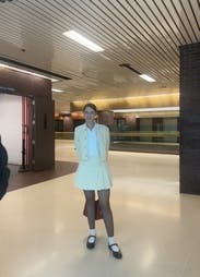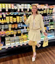 Love this butter yellow little school girl skirt paired with the matching jacket IG @bethielife