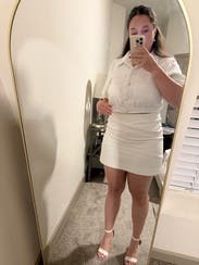Loved this, especially paired with the skirt, but could easily be worn other ways! I rented a 6, because I have a larger bust, but might’ve gotten away with the 4. Lots of compliments, might buy! 🤍