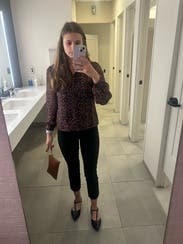 I just love the pattern and style of this shirt. It is super comfortable and looks pulled together. I love the sleeves being a bit more sheer to give it some flare. It also has nice buttons that you really do not see. Just a great versatile top.