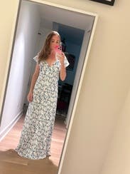 I wore this dress to a Fourth of July fireworks party and absolutely loved it! It has a lovely “flow” to it. Since I’m not a fan of ruffles, I paired it with a white denim jacket in order to cover the ruffled sleeves. I highly recommend it!