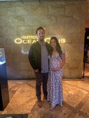 Rented while 4-5 months pregnant and had enough room for my growing bump. The fabric lays nicely. The top is very low cut. I didn’t wear a bra and I’m not sure if you could. Maybe if my chest wasn’t also growing by the day. Still a nice dress just more revealing than anticipated.