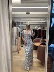 Wore to a welcome dinner for a wedding in Greece and it fit perfectly and fell gracefully. Paired with nude heels and gold accent jewelry