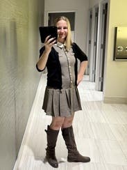 Dress gives school girl vibes and is very soft. It is extremely well made, has a liner and doesn’t wrinkle. Received several compliments.