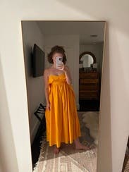 This dress shocked me. You see it and you're like, "it's an orange sack." Nope, wrong. The fit, the fabric, the color, and the details are just exquisite. I wore this to a wedding as a backup option, and I have never received so many compliments, truly. It's comfortable and forgiving, but so flattering. It's just easy! Honestly you'll feel like a million bucks