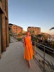 Loved this dress! Wore it multiple times and received compliments on it every time, especially on the color. I’m usually not an orange person but this was just the right shade! Very comfy, cute open back detail, and pockets.