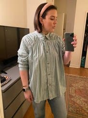 No matter how I styled this shirt, the oversized look wasn't great for me. I love the concept of the sleeves and an elevated button down, but it just wasn't right.