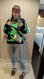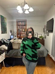 Didn’t need the glitter and mesh on the neck and wrists, but the sweater was cute. Gave off holiday vibes.