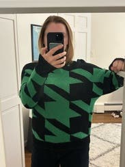 This is so cute, what a great sweater! Runs REALLY large. I’m an 8 and ordered a M, it looks like an XL and i could have gotten a S or XS. I’d definitely size down at least one size but I’m just rolling with how massively oversized this one is because it’s so cute