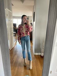 I needed to add some color to my wardrobe and this pattern is even cuter in person. It runs big but the crop is the perfect length to pair with high rise jeans. Maybe I'm still getting used to the oversized sweater look but I probably would have sized down and it still would have been roomy.