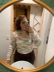I know numerous other reviewers mention how this is not a flattering sweater, and turns out I should have listened to those reviews. I liked the idea of it and the cutout was cute, but the length and thickness were awkward and made me appear larger. I'd pass on this one.