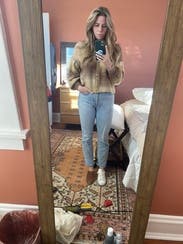Loved this sweater. It was a little bit cropped but not too much which I liked. Loved the colors too!