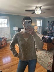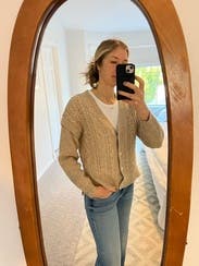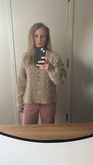 Elevated cardigan with a little flair on the sleeve. Very warm.
