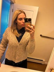 This came with tags- I didn’t end up wearing it because the v neck was too low for my comfort. Very soft for a sweater.