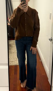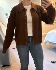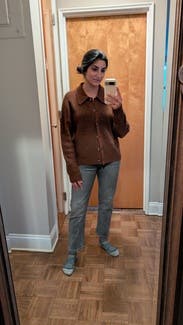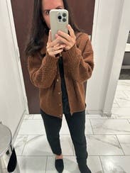 This was a super soft sweater that came to me new with tags! It was super cozy and perfect for work. I should have sized down since it isn't a super fitted sweater.