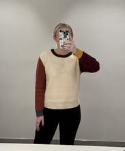 Simple, everyday sweater. The color blocking gives it a twist but overall nothing special. I only needed it for being around the house on calls so it worked well for me