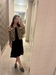 For those that attend work conferences, you know it can be freezing in the meeting rooms. You also know that versatile pieces you can wear during the day and repurpose for night are important. This jacket hits both marks. My only regret was ordering a size larger than normal. During the day, I paired this with the black Vince mock turtle-neck dress and received tons of compliments. At night, I wore it to dinner with a pair of crop jeans and a black bodysuit for a little added polish to my casual look.