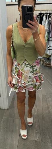 This is the second time I’ve rented the skirt but I loved it so much I wanted to rent again as a set and I loved it even more. It’s not overwhelming with the flowers, because of the sheerness of the top and thicker fabric in the bottom!