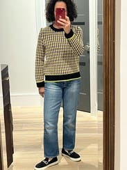 Sweater has kind of a straight/boxy fit. The pattern also didn't wow me but could be more exciting to others.