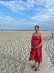 Wore for dinner on a baby moon beach weekend. Very light and had a lot of room for the bump!