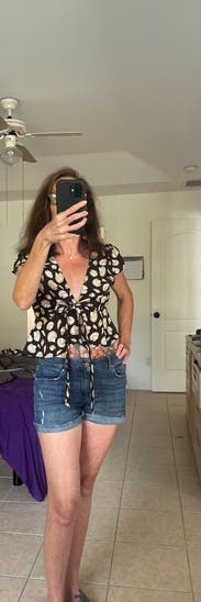 I wore this for every day, but I live in Florida where it’s basically vacation wear everywhere. I say this because there’s no buttons that I could find it is a tie right under your breast and so you are living on a prayer that the tie stays tied. I will say its probably for a younger person. But that’s not the shirt’s fault so that’s why I gave it five stars.