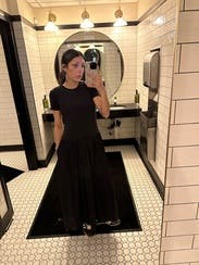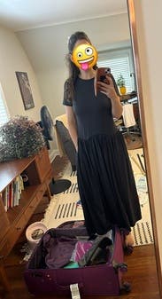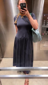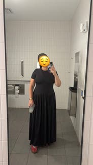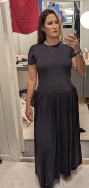 This is the best thing I’ve rented. I have rented this dress 4 times. It is so beyond comfortable and so chic at the same time. I sized down to an XS and loved the way it fit me. Drop waist is a hit or miss for me, and this was a HIT.