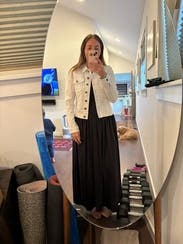 Best rental! This dress is so comfortable and soft but still looks put together. The perfect dress to layer and wear with tall boots now but seamlessly transition to Spring with sandals. I want to keep it!